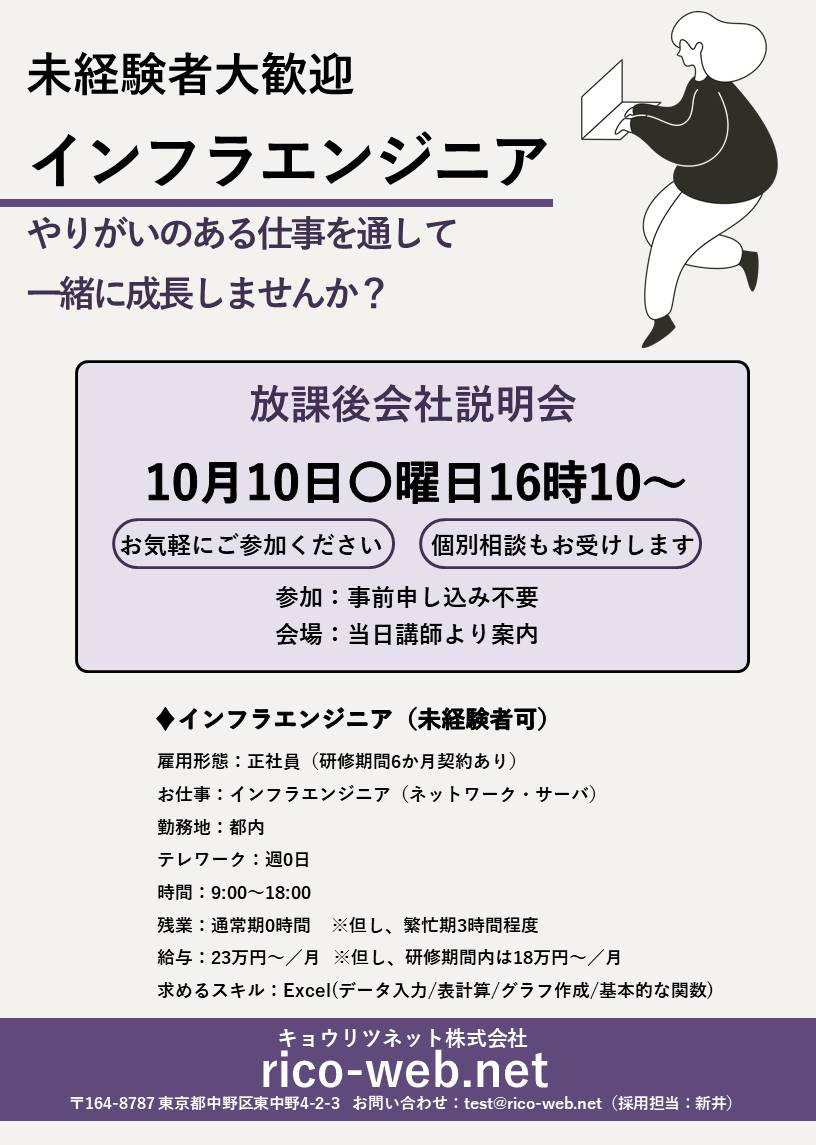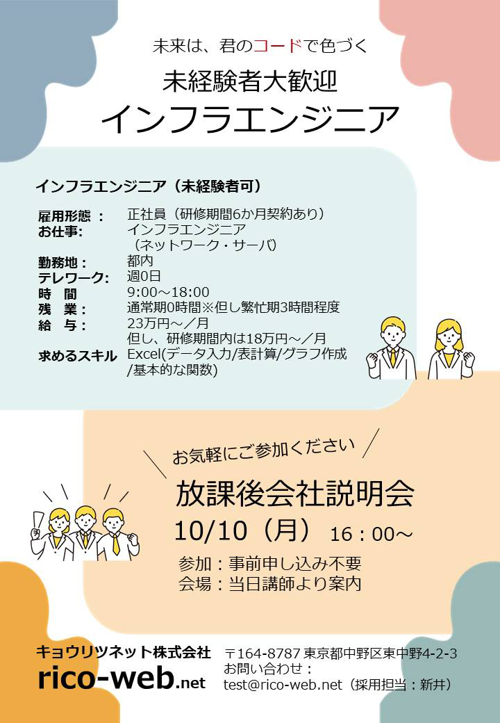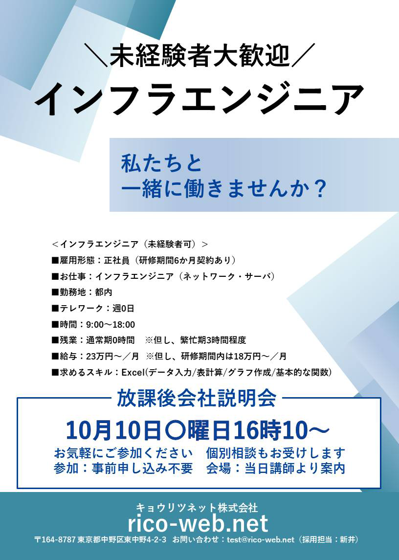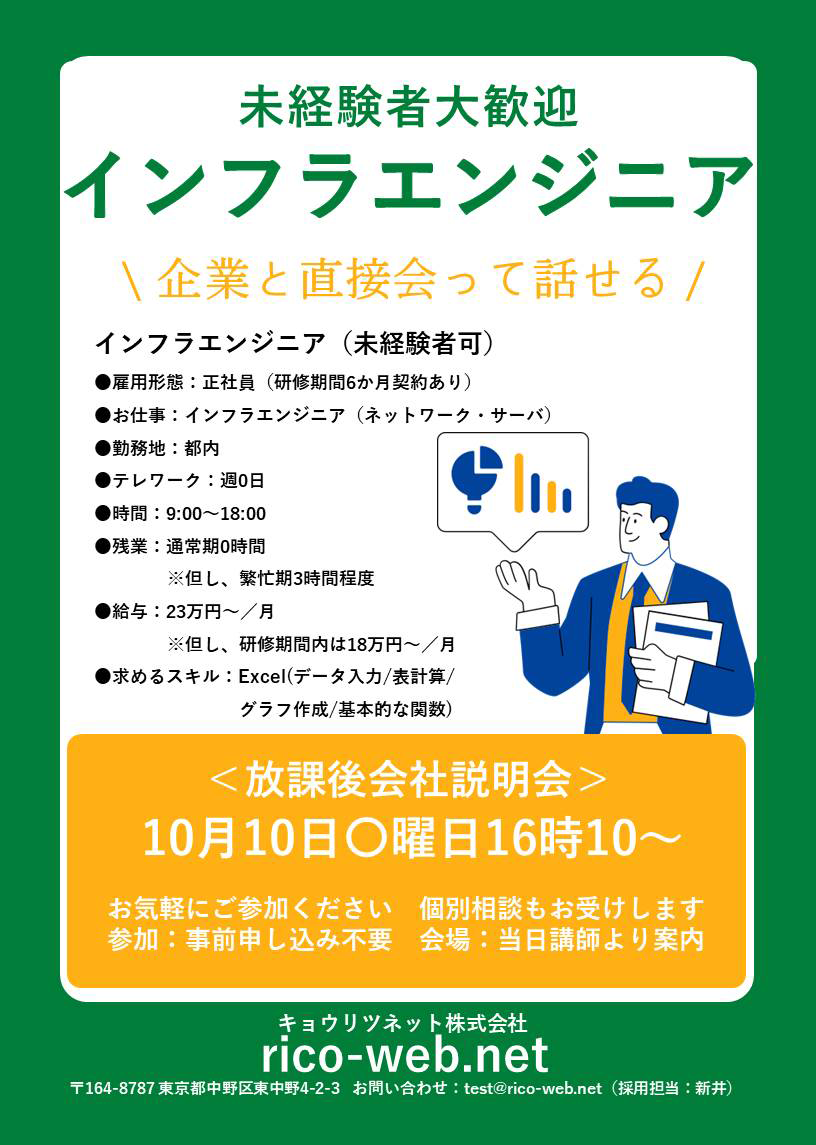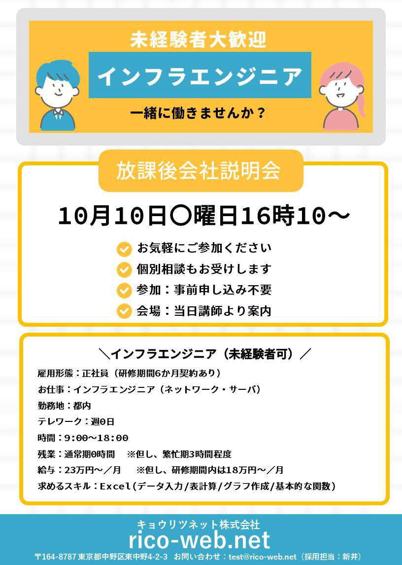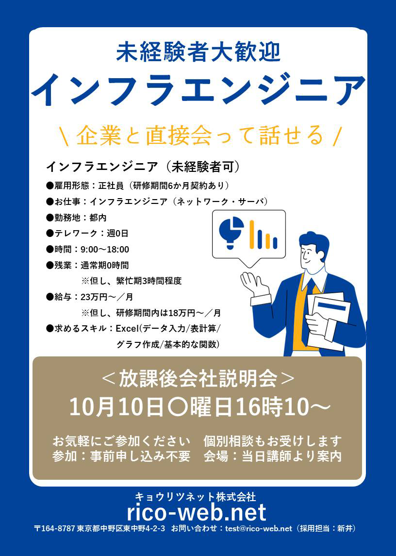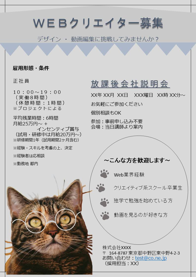 当校訓練生を対象とした貴社の会社説明会・求人情報のポスターデザインデータです。