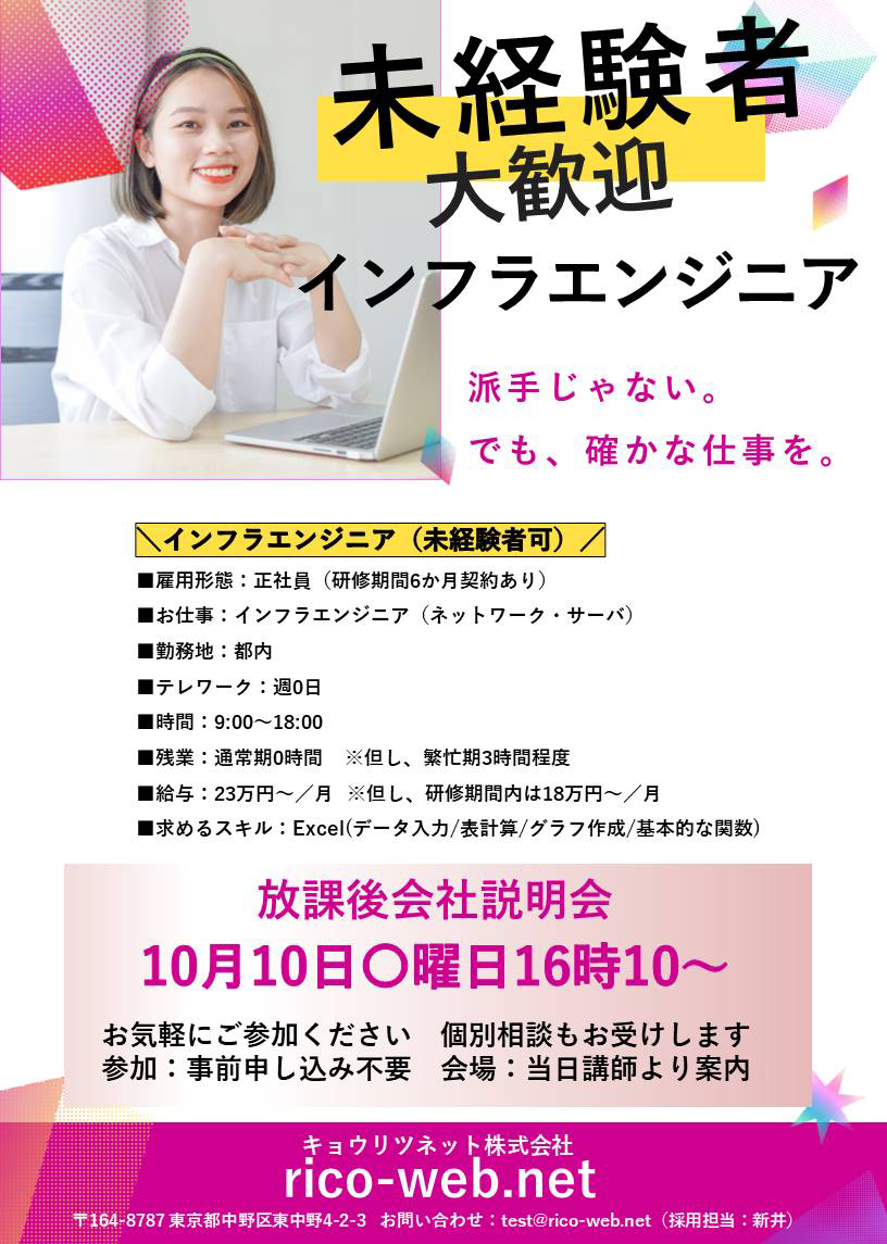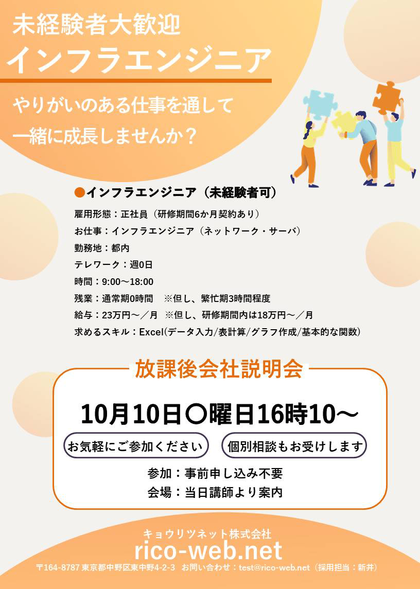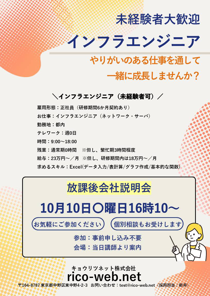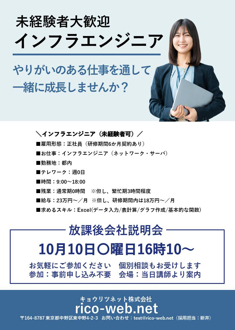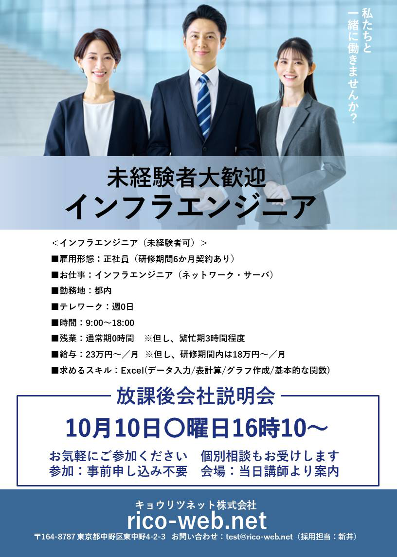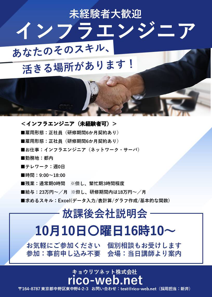 当校訓練生を対象とした貴社の会社説明会・求人情報のポスターデザインデータです。